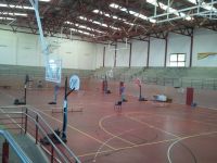 Antonio y Lorenzo, Lorenzo y Antonio necesitaron dos días para colocar las 8 canastas que se utilizaron ya que éstas estaban desmontadas completamente, tornillo a tornillo y con mucha paciencia todo estaría preparado para el gran día. Los 12 sacos de arena fueron un elemento fundamental para la seguridad de todos los niños/as y, claro está, habían que llenarlos. Las protecciones (obra de Rosa), las redes, los bancos, las sillas (de la biblioteca de Gáldar) fueron elementos que ayudaron a la comodidad de los participantes.