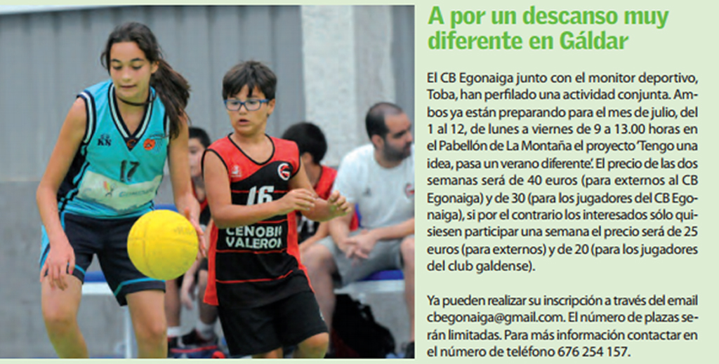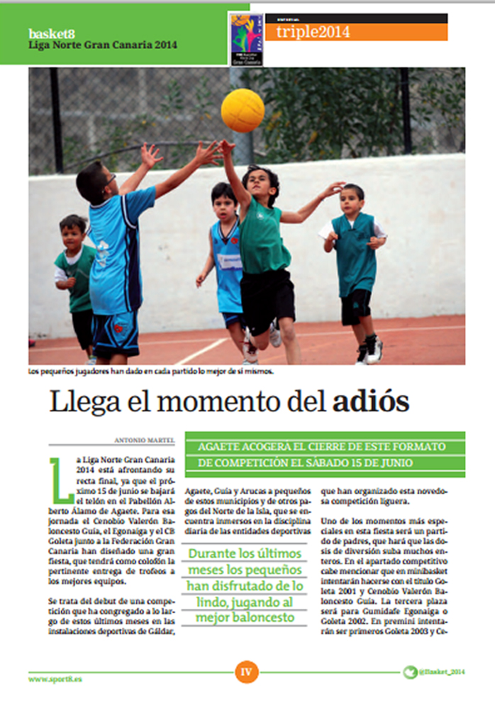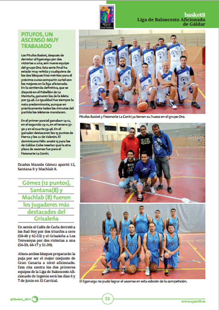 La revista Basket8 del mes de mayo ha dedicado varios artículos al CB Egonaiga y a la Liga Norte Gran Canaria 2014. La publicación mensual de Basket8 se ha hecho eco del trabajo que están realizando los galdenses y la repercusión de la liga aficionado de Gáldar y liga norte.