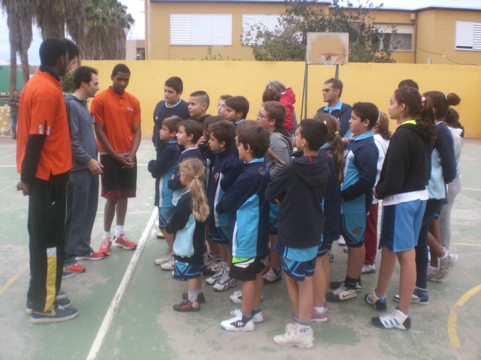 bote, técnica individual, pases, 1c1 y 3c3 fueron los protagonistas de una sesión intensa que culminó con una ronda de preguntas a los jugadores y con un mensaje de ánimo de éstos. La presidenta del CB Egonaiga, Franci Godoy, agradeció a Carlos y a los jugadores su visita y les hizo entrega de unos presentes con el sello del CB Egonaiga.