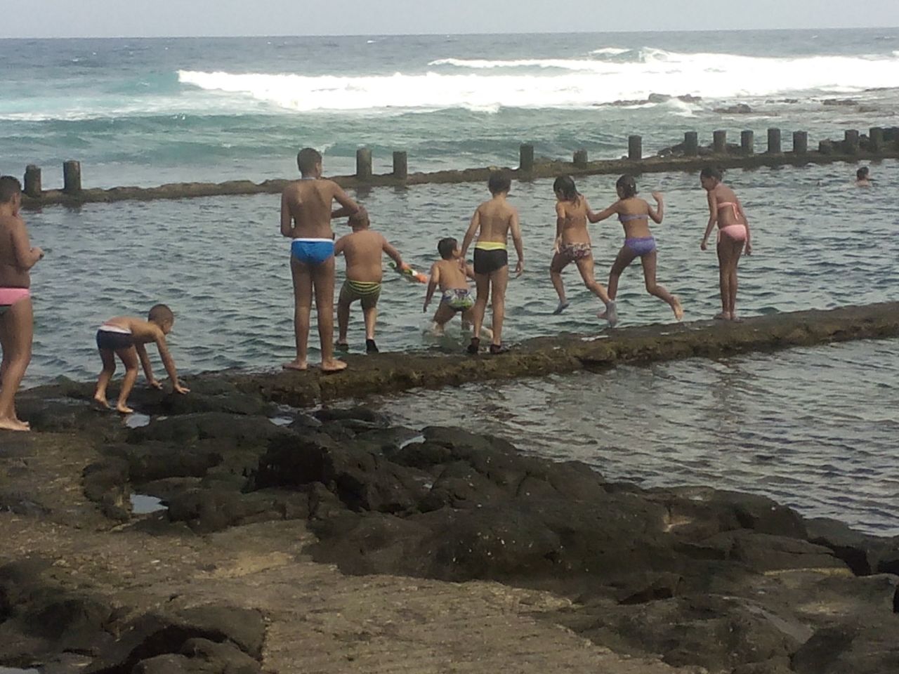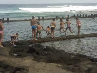 Las entrenadoras del CBGEF tenían una sorpresa preparada para este último día del clinic. Los niños, las entrenadoras y algunas madres han ido de caminata hasta la piscina de Labujero donde les esperaba un chapuzón refrescante. Cuatro semanas, cuatro excursiones y tres visitas a lugares distintos de Gáldar: labujero, piscina de San Isidro y playa de los Dos Roques.