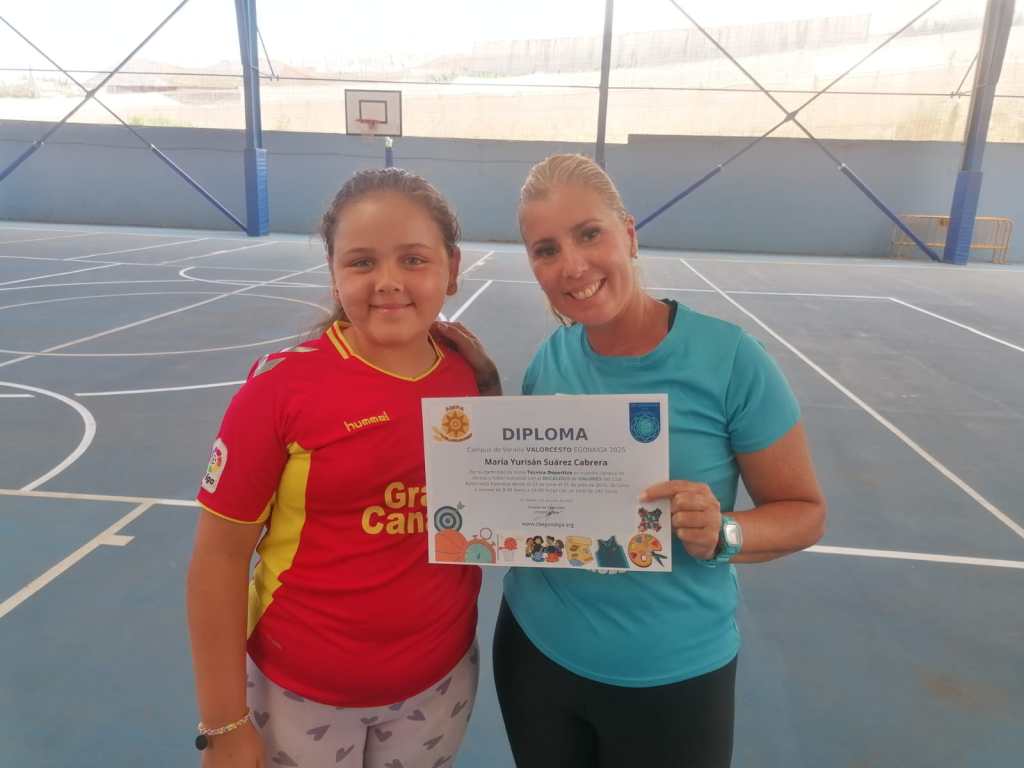 Todos los niños recibieron su recuerdo del CAMPUSV2025 en formato diploma A4, al igual que los técnicos. Otros, además recibieron un trofeo reciclado en forma de canasta reconociendo los valores del club.