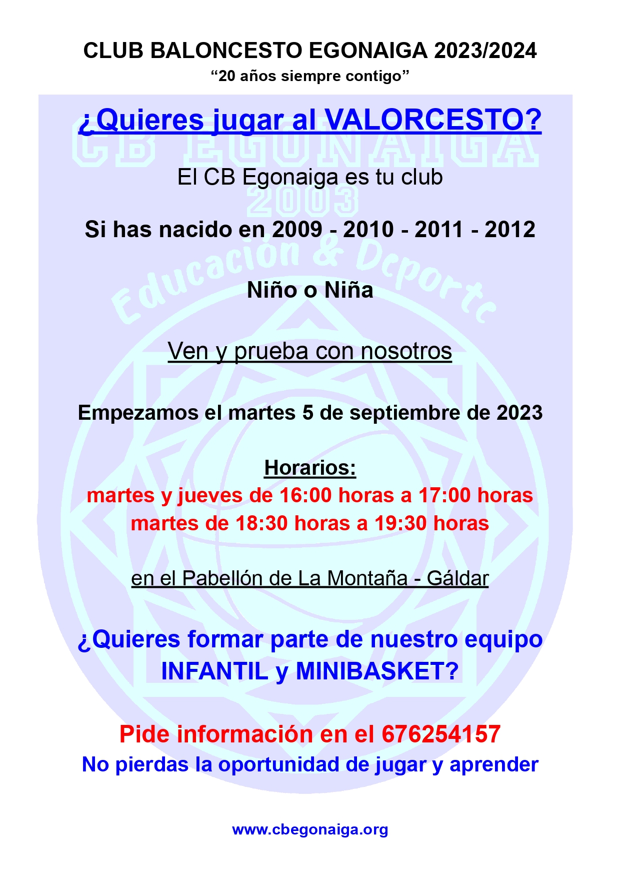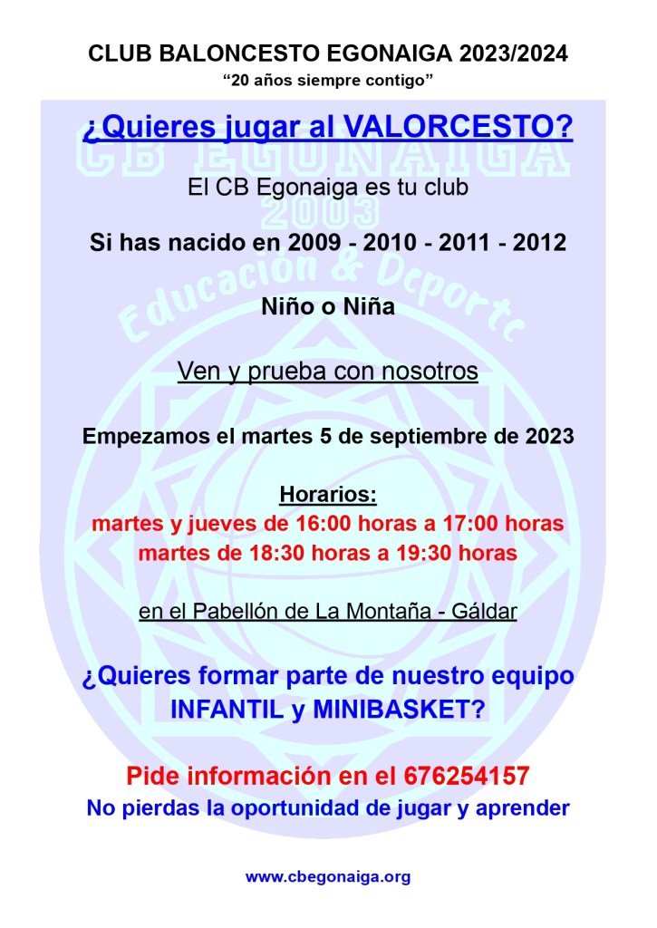 El CB Egonaiga está en modo «competición» y para ello abre el periodo de inscripción para niños y niñas nacidos entre el 2009 y 2012 (ambos inclusive) de cara a la temporada 2023/2024.