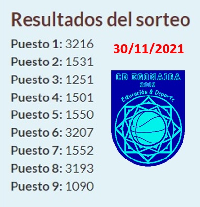1º premio: Restaurante Los Pescaditos El Enyesque: almuerzo o cena para dos personas. Pedir cita al restaurante (634951439) como ganador/a del premio del sorteo de noviembre del Club Baloncesto Egonaiga. El aprovechamiento del premio tiene que ser en el mes de diciembre, antes de 15 días después del sorteo.