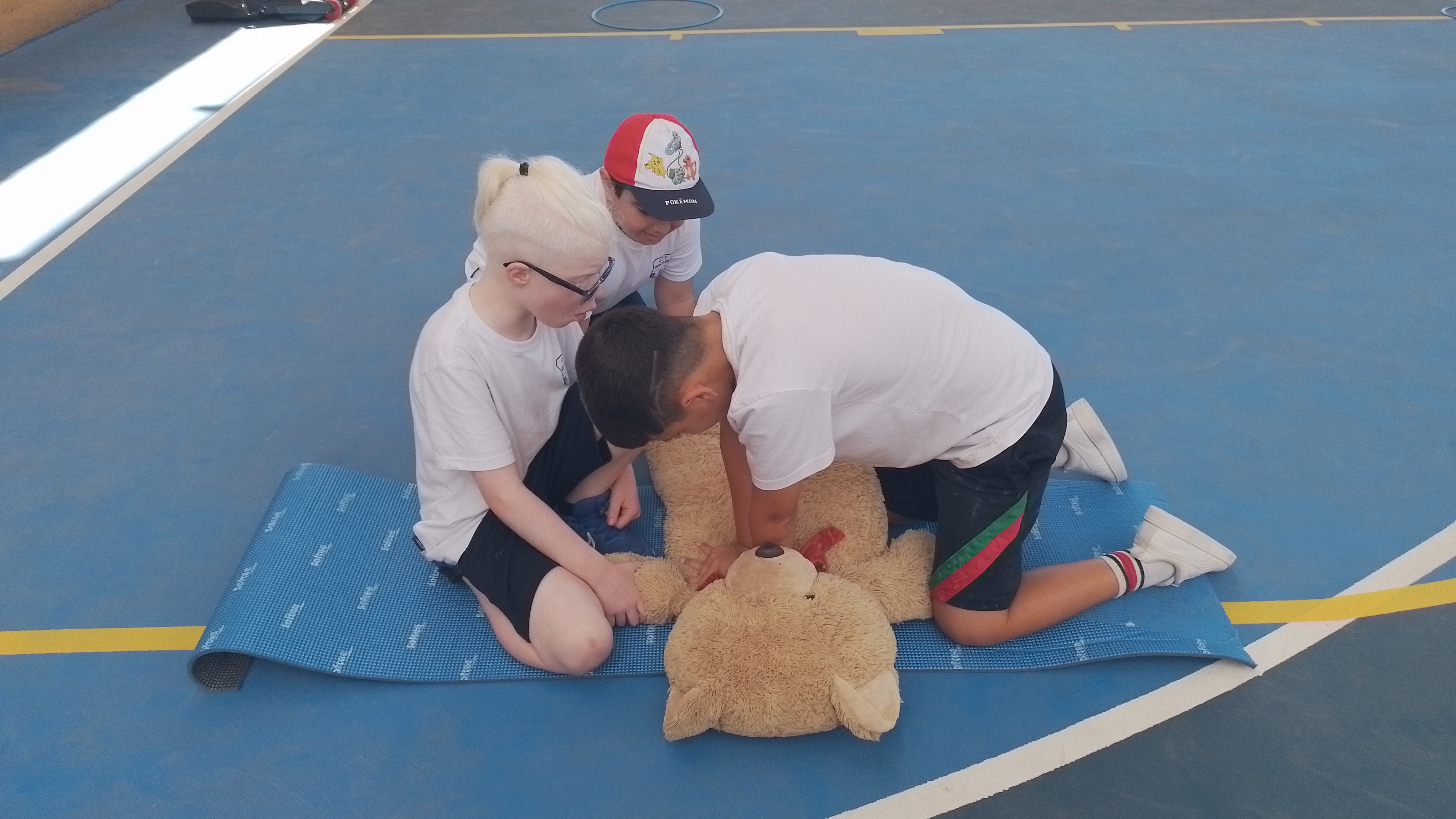 Nuestros niños en el centro escolar del noroeste de la isla aprenden la valoración primaria ante una emergencia y miren lo bien que lo hacen.